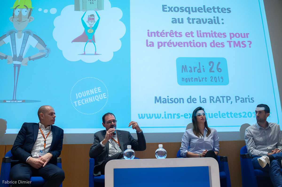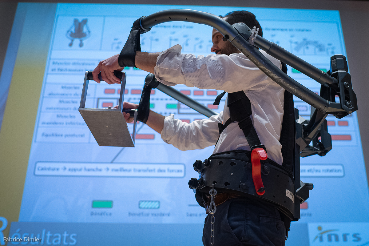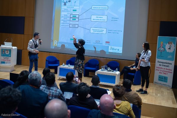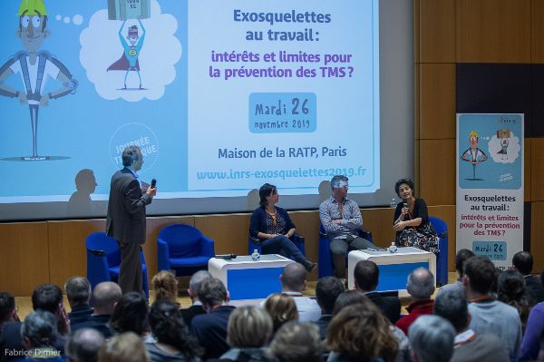 Le 26 novembre 2019, l'INRS organisait une journée technique consacrée aux exosquelettes. Cette manifestation s’adressait aux préventeurs, services de santé au travail et chefs d’entreprises aujourd’hui confrontés à l’émergence rapide de ces technologies dans le monde du travail et qui se questionnent quant à l’efficacité et aux risques associés. L'événement était également destiné aux concepteurs qui ne cessent d’innover dans la conception de leurs exosquelettes en proposant des solutions textiles, mécaniques, voire robotiques. L'événement a rassemblé près de 250 participants.