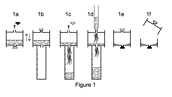 - - rincer avec deux fois 5 mL d'eau, l'introduction se faisant à l'aide d'une pipette automatique par l'orifice supérieur (fig. 1d),