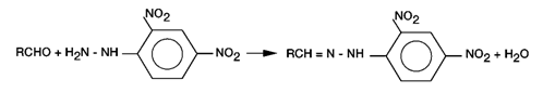 Le formaldéhyde est piégé et dérivé directement sur le dispositif de prélèvement imprégné de 2-4 Dinitrophénylhydrazine (DNPH) selon la réaction ci-dessous. C'est l'hydrazone qui est ensuite analysée.