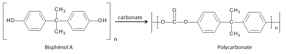 Les polycarbonates sont des composés macromoléculaires obtenus principalement à partir du diphénylolpropane, ou bisphénol A, par polycondensation avec un carbonate. Le bisphénol A et le polycarbonate sont interdits pour la fabrication de biberons depuis 2010. La France a interdit en 2015 le bisphénol A dans tous les contenants alimentaires.