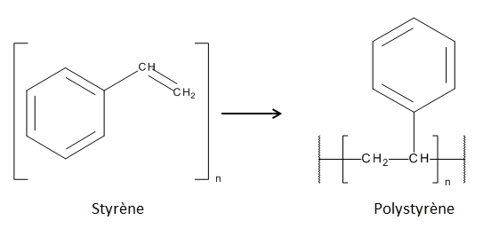 - Le polystyrène standard, communément appelé polystyrène cristal à cause de sa tranparence, résultant de la polymérisation du styrène sous l'action de catalyseurs. Il est caractérisé par sa rigidité et sa fragilté.
