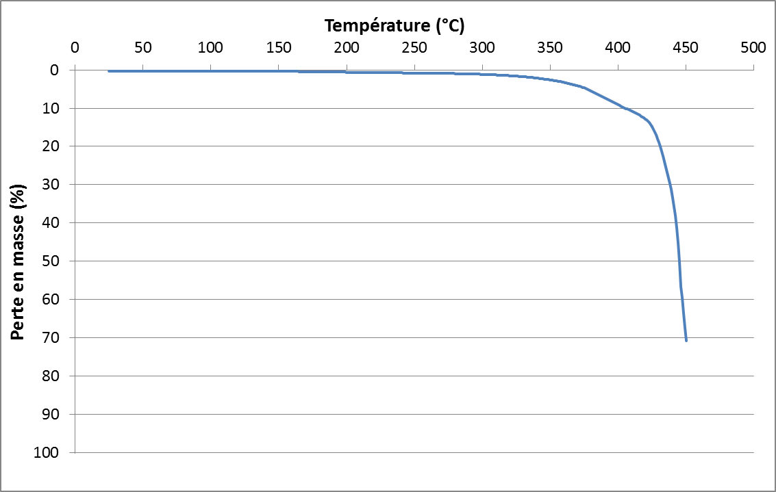 Vers 400°C, température pouvant être atteinte lors de la rilsanisation, la décomposition devient très nette. Les gaz dégagés sont, en plus de ceux précédemment cités :