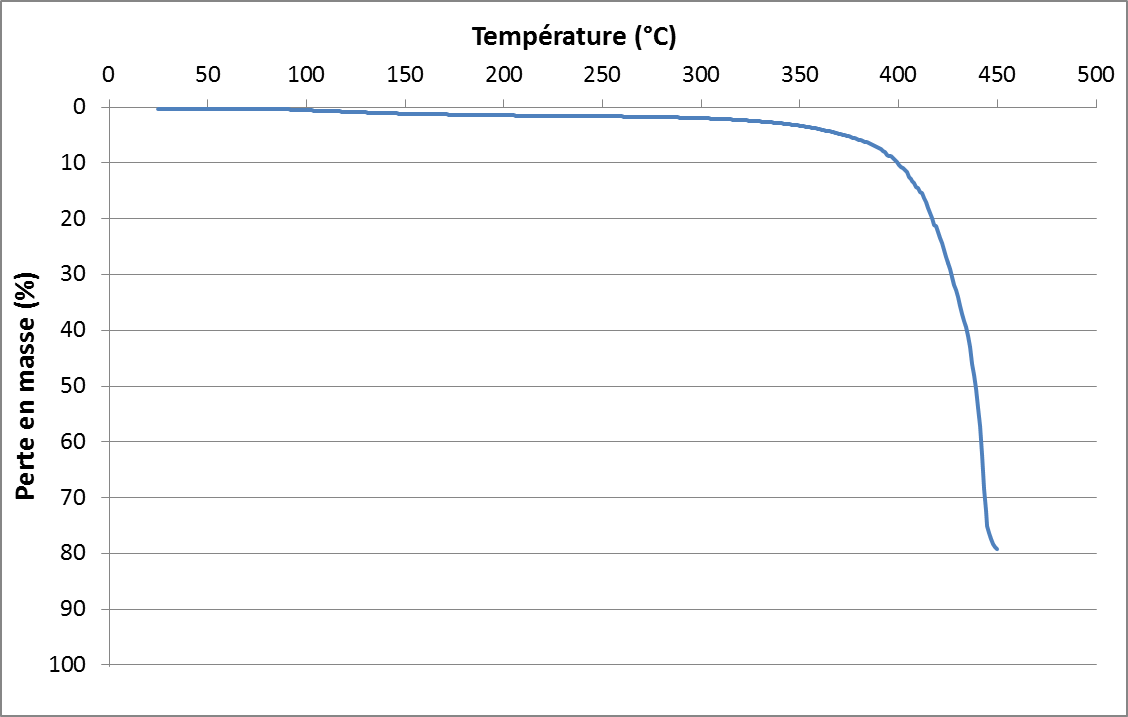 Le polyamide 6 commence à se dégrader à 320°C. Il est faiblement dégradé entre 100 et 320°C où il subit une perte en masse de 2%.