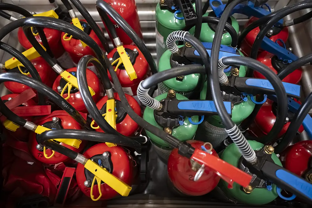 Les extincteurs sont de plusieurs types : tout dépend de l’agent extincteur qu’ils contiennent (eau, poudre, dioxyde de carbone…) et de leur poids (portatif ou mobiles sur roues…).