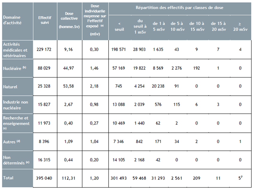 D’après les données de l’Institut de radioprotection et de sûreté nucléaire (IRSN, 2020, expositions 2019)