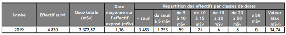 *** Bilan 2019 de l’exposition professionnelle aux rayonnements ionisants en France.