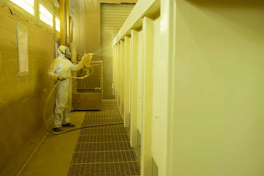 Application en cabine de peinture pour la fabrication de matériel agricole
