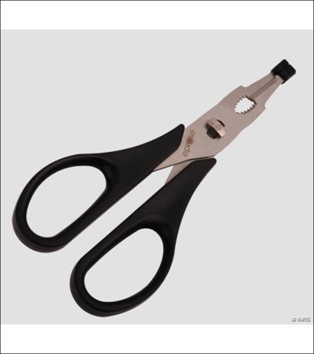 Cisaré est une paire de ciseaux en inox (conforme aux normes alimentaires) avec poignée et becs surmoulés. Ces ciseaux sont légers et démontables, ce qui facilite leur nettoyage. Ces ciseaux ont été conçus par l’INRS et la CARSAT Bretagne.